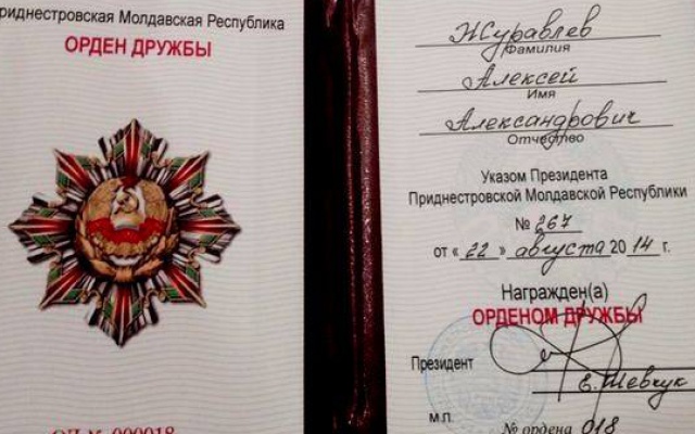 Председатель партии "РОДИНА", депутат Госдумы Алексей Журавлёв награждён орденом Дружбы Приднестровской Молдавской Республики. Президент ПМР Евгений Шевчук вручил Журавлёву награду республики "за заслуги в области развития дружбы и сотрудничества между Российской Федерацией и Приднестровской Молдавской Республикой".