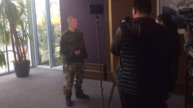 Алексей Журавлёв даёт в Донецке интервью Первому каналу, 13.11.2015