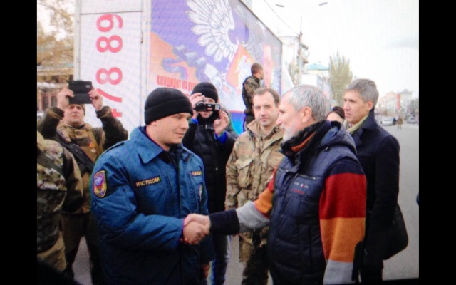 Делегация наблюдателей партии "РОДИНА" во главе с председателем, депутатом Госдумы Алексеем Журавлёвым сегодня встретила российскую гуманитарную колонну на территории Новороссии.