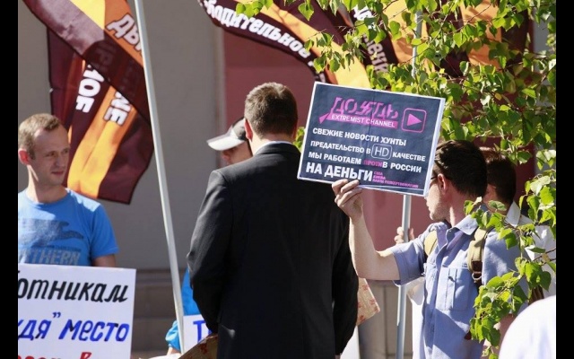 "Телеканал "Дождь" вещает и наполняет ложью и провокациями информационное поле России. Именно здесь они реализуют планы Госдепа направленные против нашей страны и нашего народа. Нельзя быть равнодушным к этому", - заявили пикетчики.