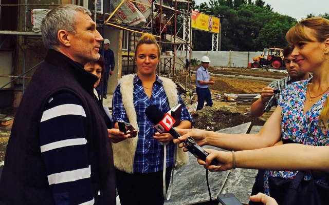 Алексей Журавлёв: "Несмотря на то, что в Тирасполе сегодня не самая жаркая погода, на объекте работа кипит, здесь действительно жарко. Мы делаем всё для того, чтобы сделать подарок приднестровцам в виде новых зданий".