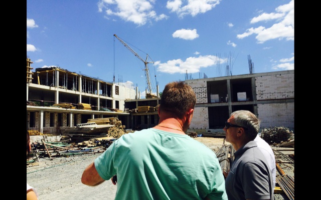 Алексей Журавлёв осматривает строительство школы в селе Ташлык.