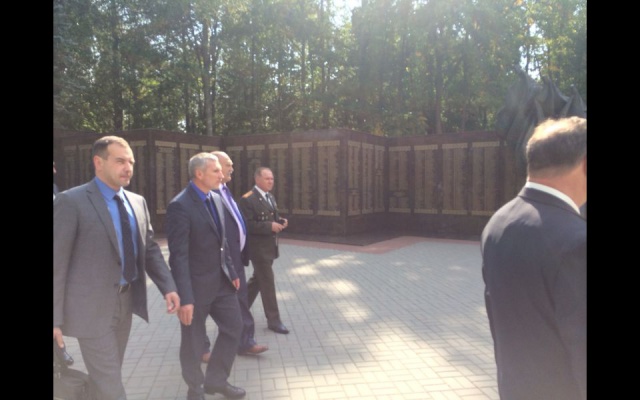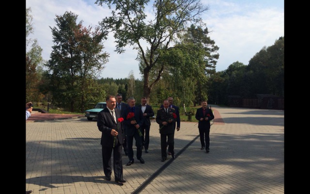 Затем Журавлёв с сопровождающими его соратниками посетили мемориальные комплексы "Партизанская поляна" и "Хацунь".