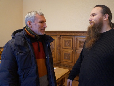 Сегодня, 30 января, председатель партии "РОДИНА", депутат Госдумы Алексей Журавлёв в Донецке с отцом Никоном, представляющим общественную организацию "Народное Единство".