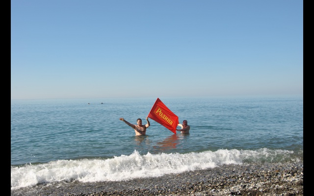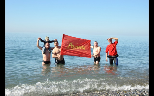 23 февраля сочинские патриоты местного отделения партии "РОДИНА" отметили заплывом в море под девизом: "Родине нужны сильные защитники!"
