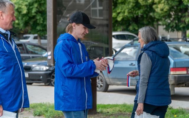 Челябинский актив традиционно раздал ленточки-триколоры и фирменные браслеты жителям города, поздравляя с праздником.