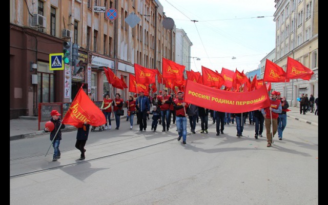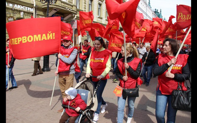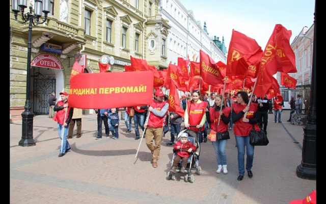 День весны и труда активисты нижегородского регионального отделения Всероссийской политической партии "РОДИНА" отпраздновали праздничной демонстрацией. Более ста членов партии вместе с семьями прошли организованной колонной по главной пешеходной улице города Большой Покровской. Под радостные возгласы "Россия! Родина! Победа!" демонстранты промаршировали под красными партийными знаменами и транспарантами от площади Минина и Пожарского до площади Горького, раздавая прохожим красные флажки.