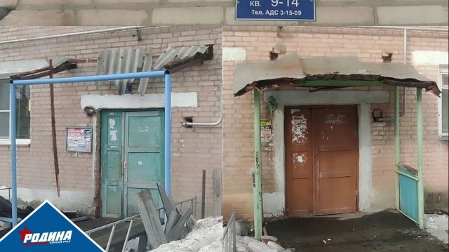 Пока одни говорят, наши депутаты делают: председатель кыштымской "РОДИНЫ" (Челябинская область) Виталий Прохоров ответил на обращения жителей улицы Боровая в микрорайоне Каолиновый, приняв меры по восстановлению подъездных козырьков.