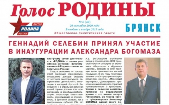 Свежий выпуск газеты можно читать по ссылке «Голос РОДИНЫ. Брянск»