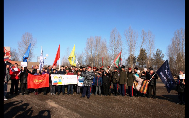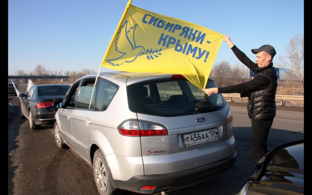 18 марта стартовал автопробег "Красноярск-Крым-Севастополь" в поддержку крымчан, организованный рядом патриотических, казачьих и общественных организаций Красноярского края. Родинцев, принимающих участие в акции, представляют член бюро Совета Красноярского краевого отделения партии "РОДИНА" Олег Емельяненко и начальник штаба Сибирского добровольческого полка имени Св. Преп. воина Александра Пересвета Александр Шитиков.