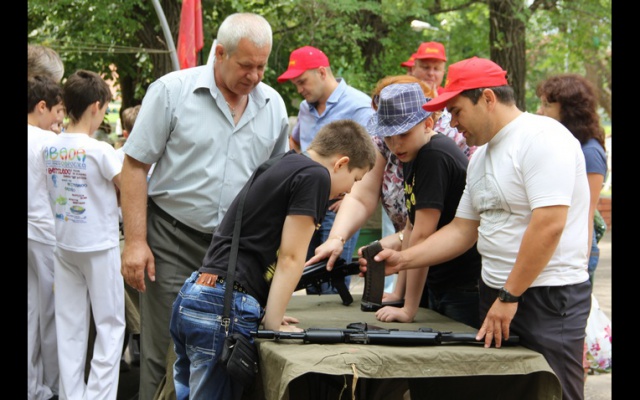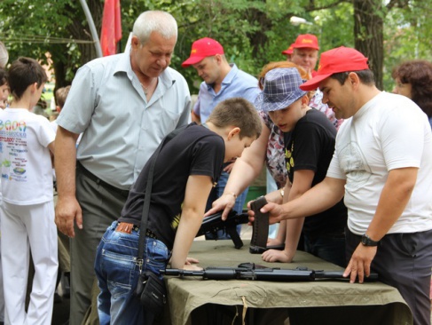 Дети и их родители с азартом участвовали в соревнованиях по разборке-сборке армейского стрелкового оружия, с интересом рассматривали представленные на выставке экспонаты, примеряли каски и саперные пояса, бронежилеты и наушники переносных радиостанций.