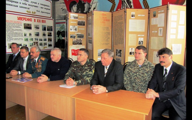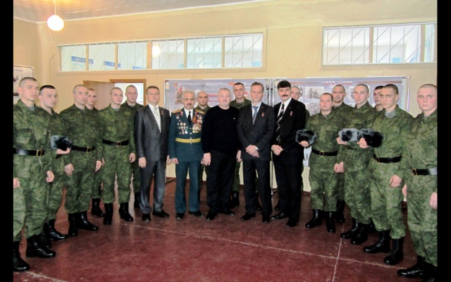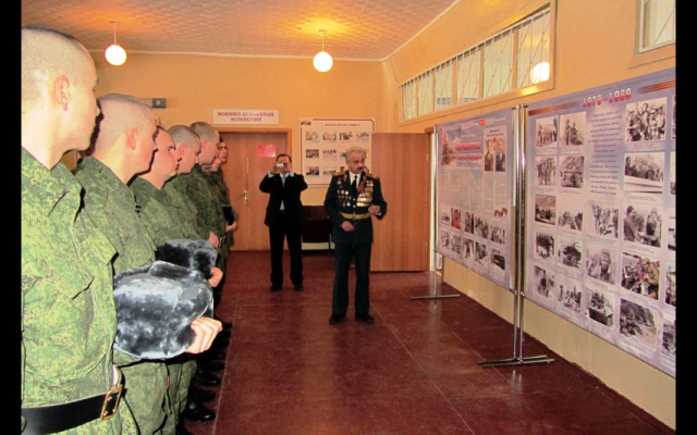 Художественный руководитель фотовыставки "Афганистан в наших сердцах" Фёдор Юрин рассказал будущим воинам Президентского полка о фотовыставке, о Героях Советского Союза Валерии Востротине и Валерии Буркове, о мужестве, отваге и подвигах, совершенных южноуральцами на афганской земле.