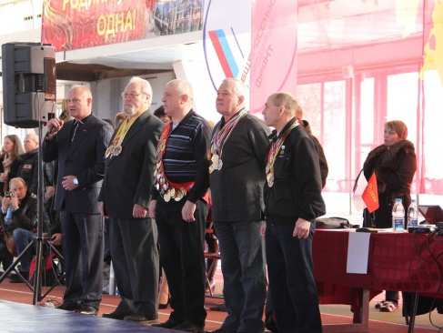 Ветераны спорта – семикратный чемпион мира по греко-римской борьбе Бочкарев Владимир Андреевич и пятикратный чемпион мира по греко-римской борьбе Кореньков Александр Петрович – поздравили победителей Фестиваля и вручили им медали и почетные дипломы партии "РОДИНА".