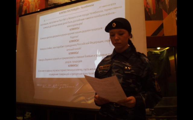 29 апреля в музее трудовой и боевой славы Челябинского Тракторного Завода состоялось посвящение в «постовцы» учащихся школ г.Челябинска, добившихся права принять участие в составе почетного караула в Вахте Памяти, посвящённой 70-й годовщине Победы в Великой Отечественной войне.