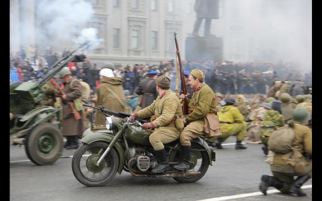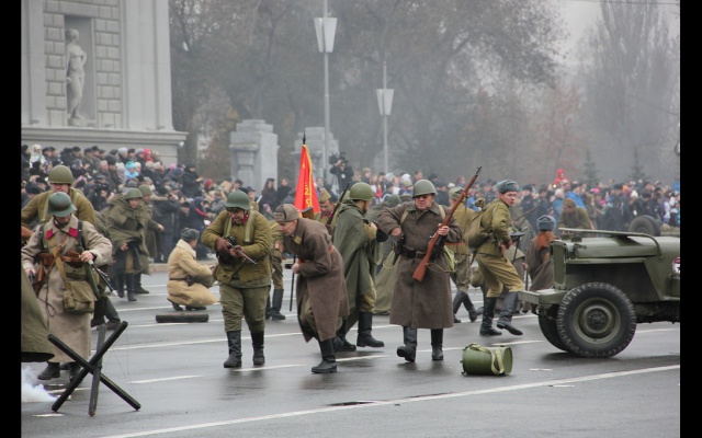 После прохождения парадных расчётов, был проведён парад военной техники времён ВОВ и масштабная реконструкция военного сражения "Битва за Москву", организованные патриотами самарского клуба "Они сражались за Родину".
