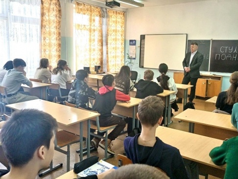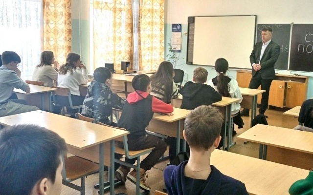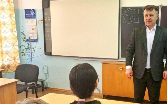 На сей раз Виталий Прохоров встретился с обучающимися средней образовательной школы №2, с которыми поговорил о своей деятельности, а также о депутатских инициативах в рамах защиты окружающей среды.