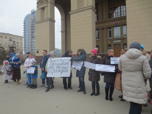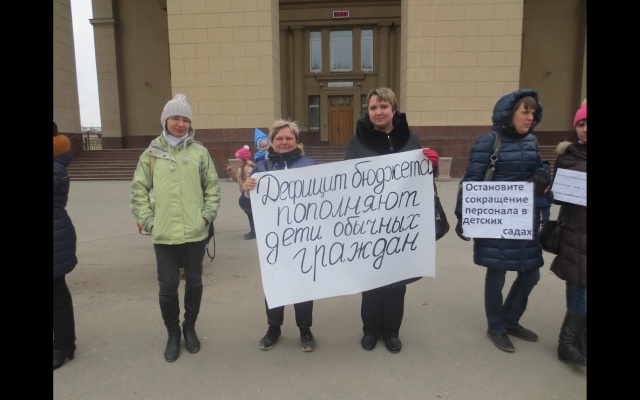 14 марта члены регионального совета "РОДИНА" Волгоградской области приняли участие в пикете родителей города Волгограда, которые борются против повышения оплаты за детский сад. Также недовольство родителей Волгограда вызывают закрытия молочных кухонь и некачественное питание в дошкольных общеобразовательных учреждениях.