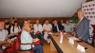 Открыл пресс-конференцию Любомир Радинович, зачитавший текст поздравления новоизбранному губернатору Воронежской области Александру Гусеву. В нем есть и такие слова: "В наше смутное время необходима сплоченность общества на принципах порядочности, справедливости и солидарности, а это основы нашей партийной идеологии. Заверяем Вас в том, что, руководствуясь этими принципами, Вы можете рассчитывать на нас как на надежного политического партнера во всех делах на пользу Воронежской области и благополучия ее граждан".